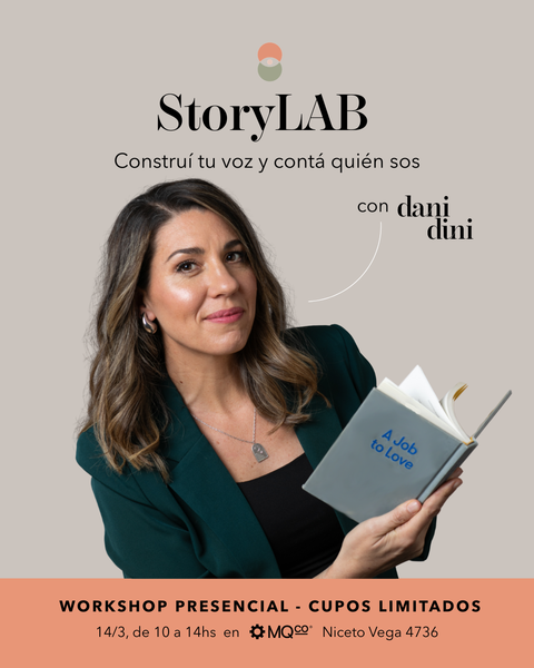 StoryLAB es un workshop presencial e inmersivo de 4 horas donde trabajaremos sobre vos y tu historia: la que te contás de quién sos y de lo que sos capaz... y la que le contás al mundo de vos e impacta en tu visibilidad y en tu profesión.